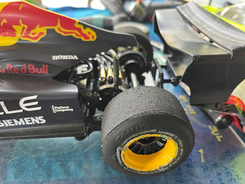 タミヤの リアタイヤ ソフトも試す(思ったより走れる気がする、路面温度に適合している?)