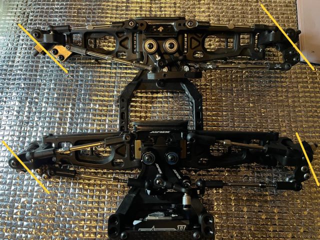 タイトなコース&狭いコース幅なら カーペット仕様の組み付けが良いと思えた。Cハブのスペーサー前後入替もアッカーマンに影響しそう。