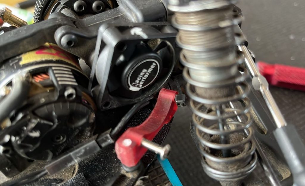 ハイギア (スパー69Tのピニオン30枚以上とか) でギリギリまで追い込んだモーターの発熱対策。より多くの風を送り込まなければならないので今時のマシンに必要。